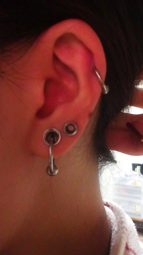 下の4gのフレアを14g×14mmのリングでホールトゥピアスにしました。